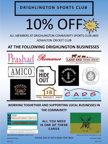 A massive thank you to Drighlington Community Sports Club for letting us run from the club and providing a welcoming venue for our social events.